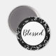 Cet aimant d'inspiration chrétienne présente une bordure d'impression damassée blanche et noire avec le mot "Béni." dans un script noir moderne au-dessus d'un cercle blanc avec une bordure noire. Partez comme il est ou personnalisez à votre goût. Fait un beau cadeau pour la famille chrétienne et les amis.