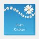 Ce joli aimant a un arrière - plan bleu. Une rangée de petites marguerites se trouve en haut avec une grande marguerite en haut à droite. Il y a un espace en bas pour un nom ou un message personnalisé.