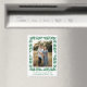 Moderne et charmant, cet aimant photo personnalisé apporte une ambiance d'art populaire scandinave à votre cuisine ou casier avec une bordure imprimée de fleurs bleu pâle et de feuilles verts qui entourent une photo d'orientation portrait de votre choix. Le texte ci-dessous peut être personnalisé avec les noms et l'année ou un message qui vous est significatif. Restez sur votre frigo comme un doux rappel de vos préférés ou offrez comme un cadeau aux parents, grands-parents et amis avec une esthétique campagnarde et leur rappeler leurs gens et lieux préférés.