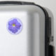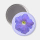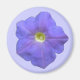 Ce design présente une photo d'un pétunia bleu aux tons violets et un centre blanc sur un aimant.