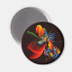 Bleu Orange Floral Moderne Art Abstrait Motif #03 Magnet rond
