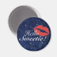Bouton bleu foncé a des étoiles et les mots "Hello Sweetie" avec un rouge à lèvres imprimé. Parfait pour les fans de River Song ou Doctor Who.