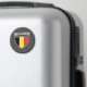Le drapeau national de la Belgique est infusé en forme de bouclier et assis sous le nom du pays.
