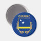 Le drapeau national de Curaçao est infusé dans un faux bouclier doré, qui repose lui-même sur des feuilles faux or.