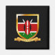 Le drapeau du Kenya est infusé dans une forme de bouclier qui est un faux or et un faux ruban d'or avec du texte incorporé.