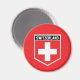 Le drapeau national de la Suisse est infusé dans une forme de bouclier qui a également le nom du pays placé au-dessus du drapeau.