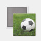 Photo d'un ballon de football en cuir noir et blanc dans un champ d'herbe verte fraîche. Idéal pour les amateurs de football ou les amateurs d'équipe d'enfants de sport. Tous les Designs Copyright © 2012 www.CuteComfy.com