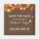 Économisez l'aimant de date avec les feuilles d'érable qui tombent. Parfait pour la réception de mariage d'automne. Couleurs vives et vives de l'automne. Personnalisez le libellé pour toute occasion avec le thème de l'automne. Douche nuptiale, baby shower, anniversaire, fête de fiançailles ou autre. Aussi grand que le parti favorise aussi.