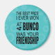 Texte de style typographique moderne pour votre meilleur ami Bunco. Bunco dice sentiment : Le meilleur prix que j'ai jamais gagné à Bunco a été votre amitié. Arrière - plan floral modulaire accentué de texte noir. Un cadeau parfait en tant que prix Bunco.