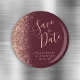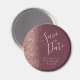 Le bord gauche de cet élégant aimant Save the Date comporte une bordure de parties scintillant en or rose. Le texte personnalisable combine un script d'écriture manuscrite rose rose avec une police serif sur un arrière - plan bordeaux.