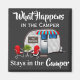 Un aimant amusant avec un camper mignon et le message, "Ce qui se passe dans le Camper...Reste dans le Camper" Ajouter le nom pour signer pour la personnalisation.
