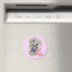Aimant caniche mignon avec téléphone rose