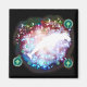 Ce tableau représente une chèvre de mer blanche parmi les étoiles colorées de l'univers, avec un design étoilé vert et noir faisant la constellation, Capricorne. Oeuvre Copyright 2017 Kimberly J Tilley.