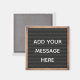 Ajoutez votre propre message ou un nom à cet aimant frigo. Cet aimant en forme de carré a l'air d'une carte ou d'un panneau de style marquee en noir dans un cadre en bois avec votre texte en lettres blanches.