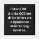 � j'ai CDO il � comme OCD mais toutes les lettres sont dans l'ordre alphabétique comme elles devraient l'être. � Découvrez ce drôle de design personnalisé sur tee - shirts, chemises, mugs, pyjamas, cadeaux et autres vêtements.