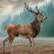 Aimant Cerf Lone Dans La Forêt Misty