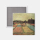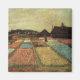 Les champs de bulbes de Vincent van Gogh est une peinture à l'huile de paysage floral de style post-impressionniste représentant la nature. Un champ de fleurs printanières en fleurs avec un fermier marchant, le ciel est rempli de nuages d'orage gris. Une ferme est à l'arrière-plan.