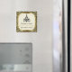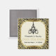 Chandelier Art Déco noir, aimant Save the Date or et noir avec un lustre noir, une bordure dans le style Art Déco et un damas floral noir et or sur fond beige/ecru. Ce design élégant est une approche moderne d'un style vintage/retro qui ressemble à celui des Années folles et de Gatsby le Magnifique. Il fait partie d'une collection de mariage et est entièrement personnalisable.