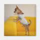 charlie était un peu inquiet quand sa fille a quitté la pièce - il a l'air adorable sur le banc jaune son beau manteau blanc
