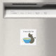Un design mignon avec un petit chat gris assis à côté de son grand bol bleu de nourriture pour chat. Dites "J'aime mon chat" le dicton peut être changé si vous le souhaitez.