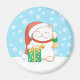 Aimant Chat de Noël blanc dans un Casquette rouge