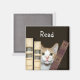 Le chat tigré orange et blanc scrute de ses livres de bibliothèque avec le conseil pour lire l'aimant carré de réfrigérateur. Réserve le png acheté de peindre sur mon âme pour l'usage