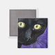 Aimant frigo Feline avec une illustration de Lisa Marie Robinson. Cette aquarelle représentant un chat noir au visage sucré, aux yeux jaunes, contre un arrière - plan violet est parfaite pour tout amoureux des chats. Oeuvre © Lisa Marie Robinson. Tous droits réservés.