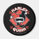 Regardez Chibi Harley Quinn alors qu'elle fait les éclaboussures devant une toile de fond en losange à pois rouges avec son nom écrit autour d'elle.
