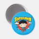Regardez Chibi Superman voler dans les nuages avec son nom de super héros au-dessus et sa forme de bouclier à pois rouge derrière lui.