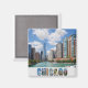 Express votre amour pour la ville de Chicago avec cet aimant avec une photo cool de la rivière Chicago et la ville skyline! Le collage en couleur sous la photo présente des images supplémentaires de la ville, y compris Navy Pier et d'autres vues du centre-ville de Chicago! Vous pouvez modifier la couleur arrière - plan du bas de l'aimant pour qu'elle corresponde à votre préférence.