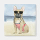 Cette impression d'aquarelle présente un chiot en lunettes de soleil qui profite de la plage | Par Grace Popp