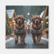 Ce design festif capture l'esprit joyeux de la saison des fêtes, mettant en vedette des chiens adorables. Nichés dans un pays des merveilles hivernal, avec un arbre de Noël décoré et des cadeaux magnifiquement emballés. Les flocons de neige tombent doucement, ajoutant une touche magique à la scène, tandis que les couleurs vives des décorations de Noël créent une atmosphère chaleureuse et joyeuse.