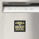 Aimant à thème de hockey avec texte qui lit Chiens et Hockey Me rendre heureux Humains Faire ma tête mal! Il y a aussi des bâtons de hockey et des empreintes de pattes de chiens!
