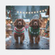 Cette conception festive capture l'esprit joyeux de la saison des fêtes, avec un adorable chien. Niché dans un pays des merveilles hivernal, avec un arbre de Noël décoré et des cadeaux magnifiquement emballés. Les flocons de neige tombent doucement, ajoutant une touche magique à la scène, tandis que les couleurs vives des décorations de Noël créent une atmosphère chaleureuse et joyeuse.
