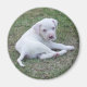 Adorable chiot de taureau américain blanc sur l'herbe verte
