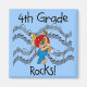 Joli chiot avec un crayon jaune géant dit "Rochers de 4e année" sur T-shirts, sweat - shirts à capuche, tasses, cartes, sacs fourre-tout, magnets, et plus !