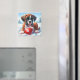 Aimant Chiot de boxe jouant en neige avec une balle de jo