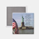 "Le courage est contagieux. Quand un homme courageux prend position, les épines des autres sont souvent raidies." Billy Graham cite sur la statue de la liberté avec l'aimant arrière - plan du drapeau américain.
