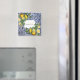 Carrelage traditionnel peint à la main du Portugal avec des citrons méditerranéens. Pièce d'artisanat azulejo bleu et blanc en feuilles florales. Une belle décoration méditerranéenne représentant des citrons jaunes avec leur verdure et fleurit contre un motif portugais vintage bleu et blanc. Le texte mariage est élégamment encadré d'une forme géométrique blanche. Unique Azulejo bleu et blanc mariage floral faveur design avec des éléments modernes. Des invitations de mariage et d'autres articles de papeterie sont également disponibles.