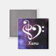 Les symboles de la clef et de la clef de basse sont combinés pour former un coeur musical, avec une nébuleuse violette vibrante comme arrière - plan. Moyen facile pour musicien, auteur-compositeur, artiste, chanteur, bassiste, compositeur à l'express amour pour la musique. La galaxie personnalisée et l'aimant de la musique est une idée cadeau parfaite pour un professeur de musique, un orchestre, un étudiant en musique, DJ, un membre de choeur, un instrument à cordes ou un musicien, y compris banjo, basse, violoncelle, harpe, guitare, piano, ukulele, alto, violon. Customiser avec un nom, un instrument de musique ou tout autre texte. Conseil de conception : Taille et position du texte pour flotter agréablement dans l'espace sous l'image du coeur.
