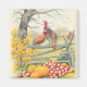 Une journée idyllique d'automne sur la ferme. Cette impression vintage de Thanksgiving représente deux dindes sur une clôture. Une grange dans l'arrière - plan. Fête de l'action de grâce au premier plan.