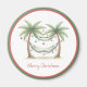 This cute coastal holiday inspired Christmas magnet features palm trees decorated with ornaments and a hammock.