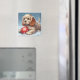 Aimant Cocker Spaniel Chiot posé sur la neige avec une ba