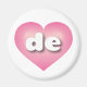 Cet aimant est composé d'un coeur rose cool et calme, d'un centre blanchi contenant les lettres de coque inférieures arrondies, blanches et audacieuses, une abréviation ludique de l'état du Delaware, le premier état.