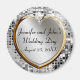 Changez facilement votre propre texte sur ces élégants look métal argenté (imprimé de façon réaliste, pas de vrai métal ou des paillettes) magnets et faveurs de fête avec un coeur de look 3d, avec une belle bordure dorée, sur l'arrière - plan scintillant de la paillette d'argent. Montré est "Nom et Nom's Wedding Day and the date" en élégant script. Modifiez facilement vos noms et dates personnalisés. Aussi agréable pour les fêtes, les occasions spéciales et les grands événements comme un 25e anniversaire argent. Un look riche, mais abordable.