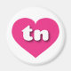 Cet aimant est doté d'un coeur rose chaud, plein de formes et de vitalité, qui contient les lettres coques basses tn, rondes et blanches, une version ludique de l'abréviation du Tennessee, l'état bénévole.