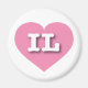 Cet aimant est doté d'un coeur rose vif contenant les lettres coques en haut, blanches et audacieuses IL, l'abréviation officielle de l'Illinois, l'état des Prairies.