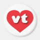 Cet aimant est doté d'un coeur rouge vif contenant les lettres coques inférieures vt, audacieuses, blanches et arrondies, une abréviation ludique pour Vermont, l'état de montagne vert.