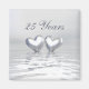 Aimant avec mon oeuvre couleur argent de deux coeurs argentés flottant sur l'eau. Le texte personnalisable dit "25 ans".