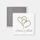 Deux coeurs dorés entremêlés avec un nom de mariée et de mariée facile à customiser. Modifiez la couleur, la taille et la police elle-même avec l'outil de personnaliser facile. Coeur d'or, parfait pour votre décoration mariage.